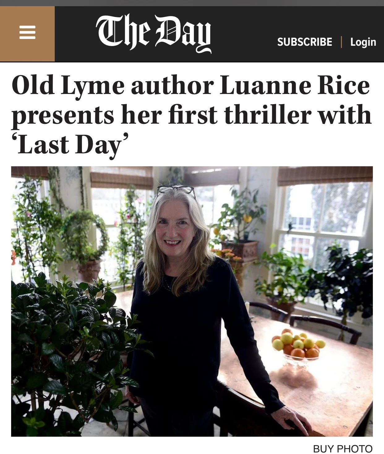 The Day is pleased to announce, in partnership with Bank Square Books in Mystic, a new book club called Read of The Day. The inaugural gathering happens Saturday at Bank Square and features Old Lyme serial-bestseller Luanne Rice in support of "Last Day," her brand new — and first-ever — crime novel. The whodunit is rife with local lore and settings, and is based on a famous Niantic murder case from the early 1990s — and the plot has so many clever red herrings you'll never figure out who did it.
